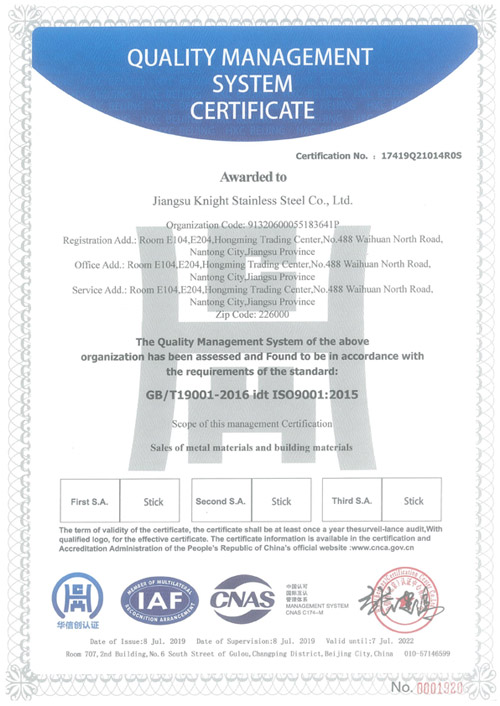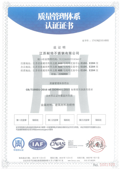 質(zhì)量管理體系認(rèn)證證書(shū)