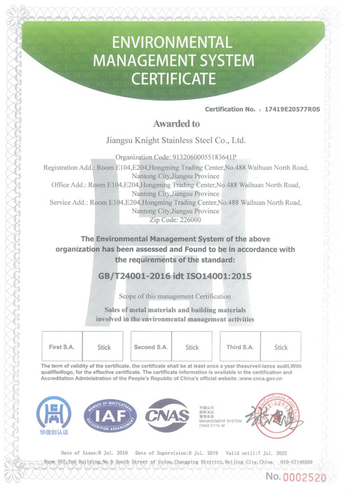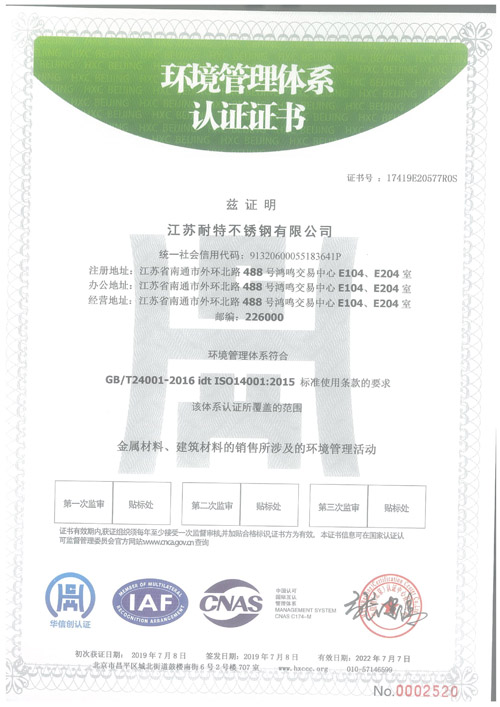 環(huán)境管理體系認(rèn)證證書(shū)(英文版)